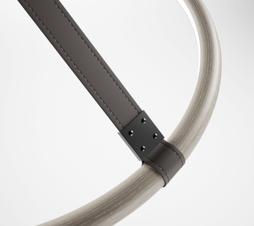 - The Cortina pendant lamp is available in two variants: one characterised by a slim vertical hoop in wood attached to a leather cable, and one with a horizontal hoop and an additional element that creates the illusion of a hemisphere. Two clean-lined accessories with a strong, bold allure.